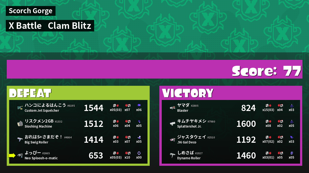 | Mode | Clam Blitz - X Battle | ||
