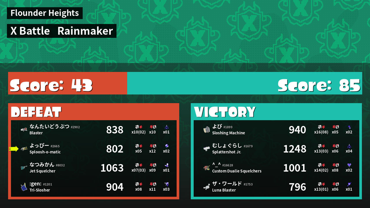 | Mode | Rainmaker - X Battle | ||