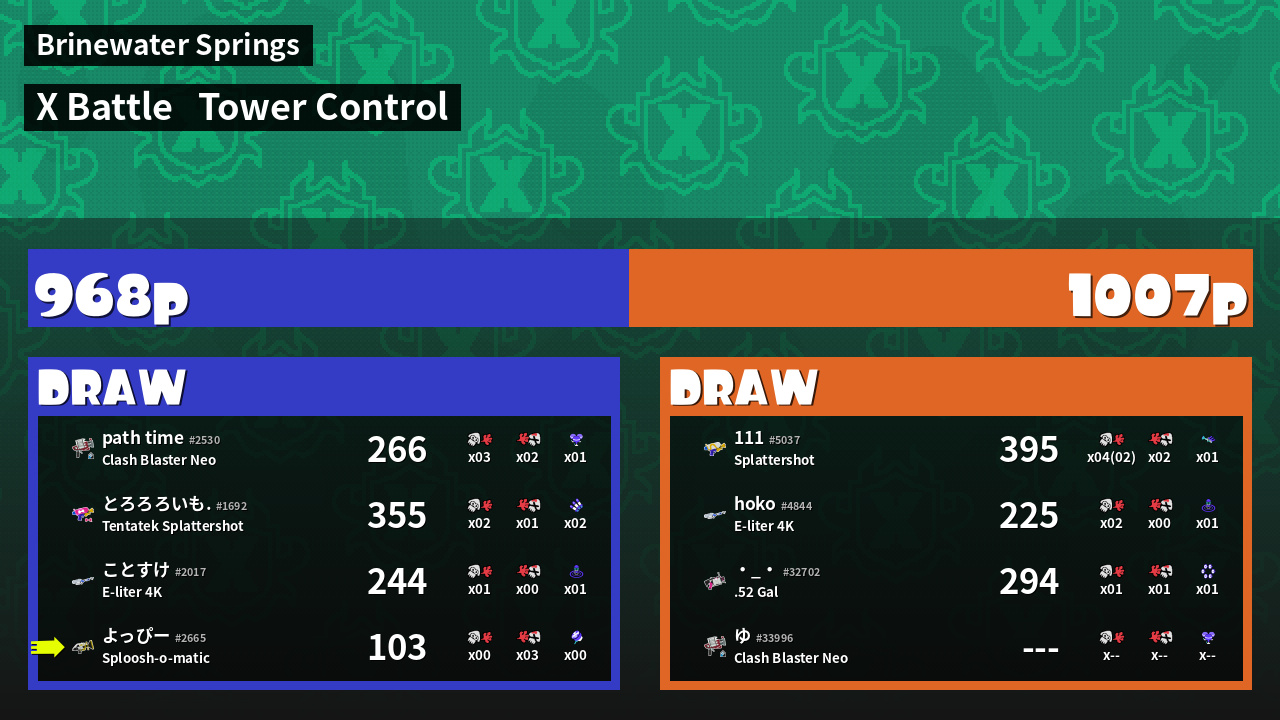 | Mode | Tower Control - X Battle | ||