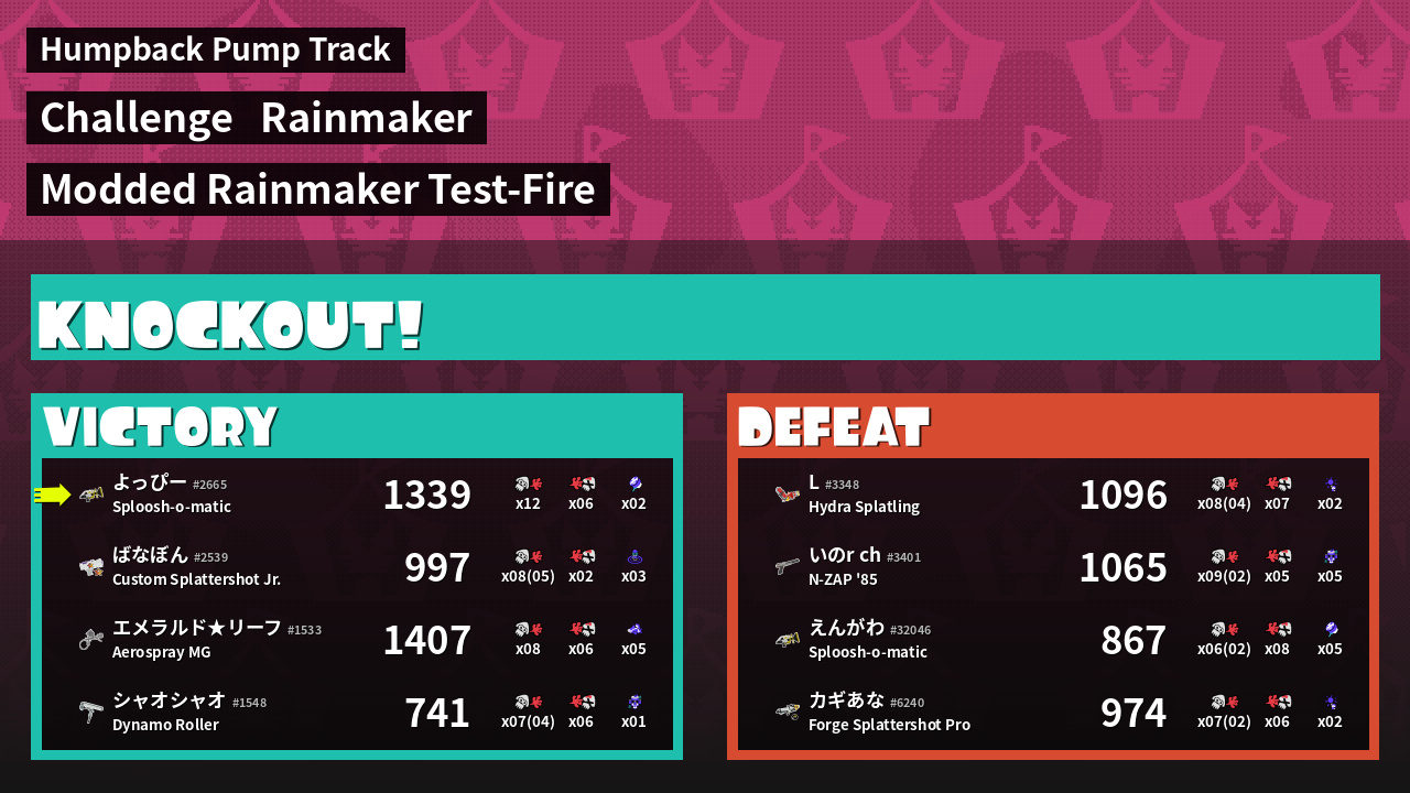 | Weapon | Sploosh-o-matic ( Curling Bomb / Ultra Stamp) | ||