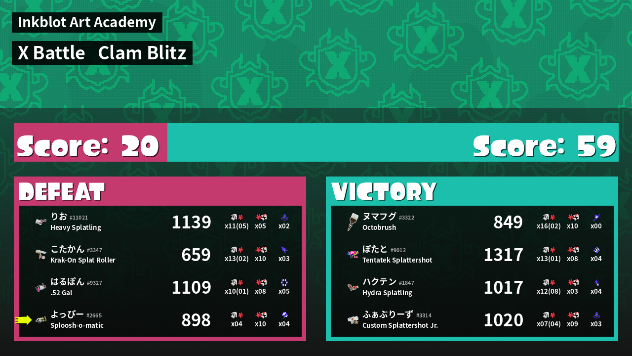 | Mode | Clam Blitz - X Battle | ||