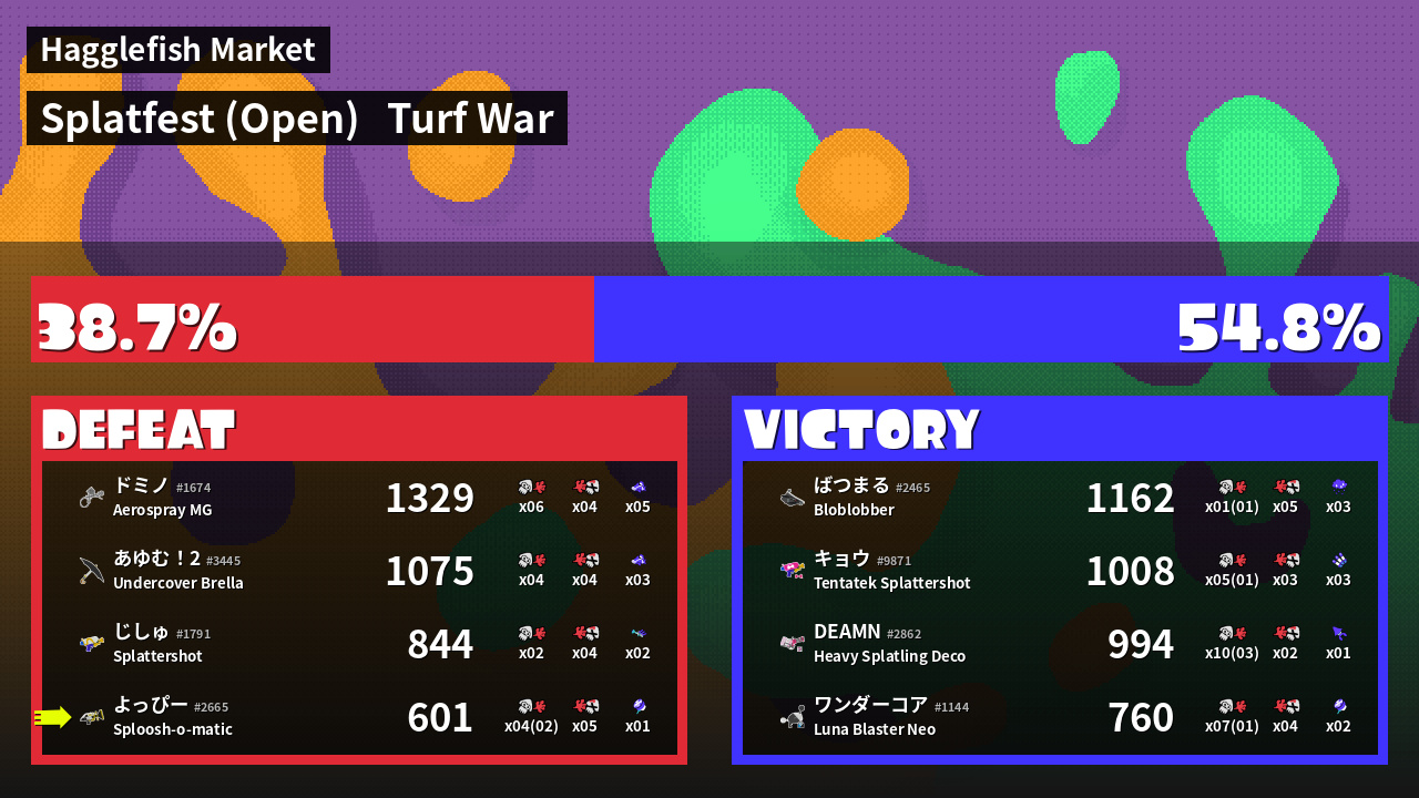 | Medals | #1 Super Jump Spot #1 Splat Assister #1 Ground Traveler | ||