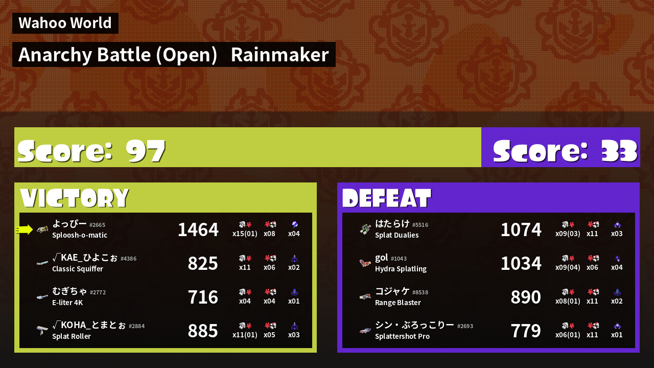 | Mode | Rainmaker - Anarchy Battle (Open) | ||