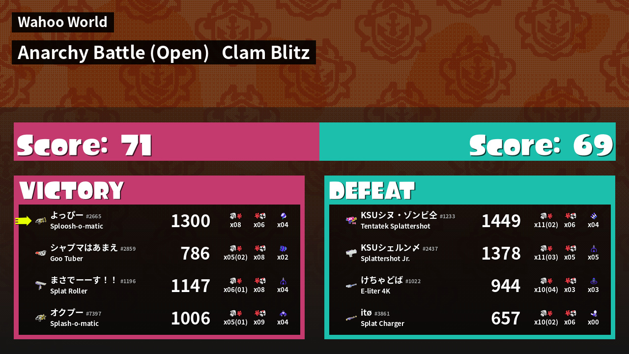 | Mode | Clam Blitz - Anarchy Battle (Open) | ||