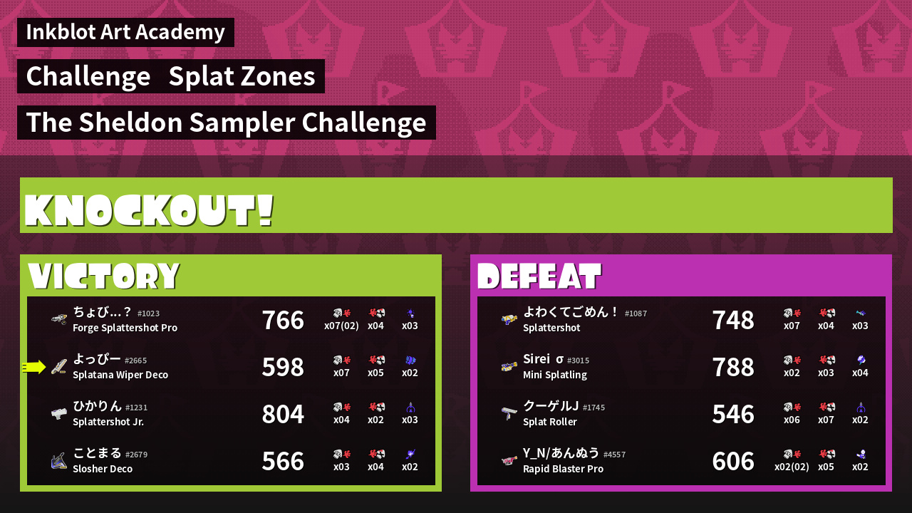 | Medals | #1 Overall Splatter #1 Splat Zone Guard #1 Enemy Splatter | ||