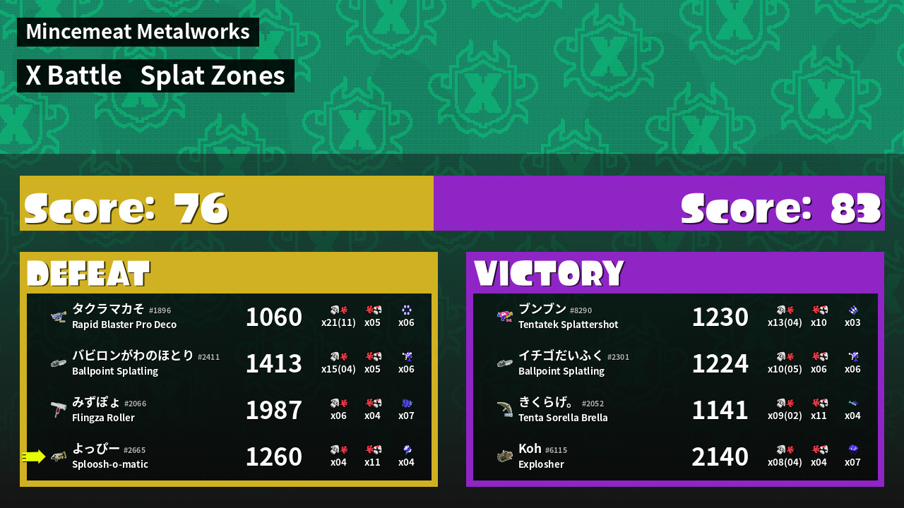 | Weapon | Sploosh-o-matic ( Curling Bomb / Ultra Stamp) | ||