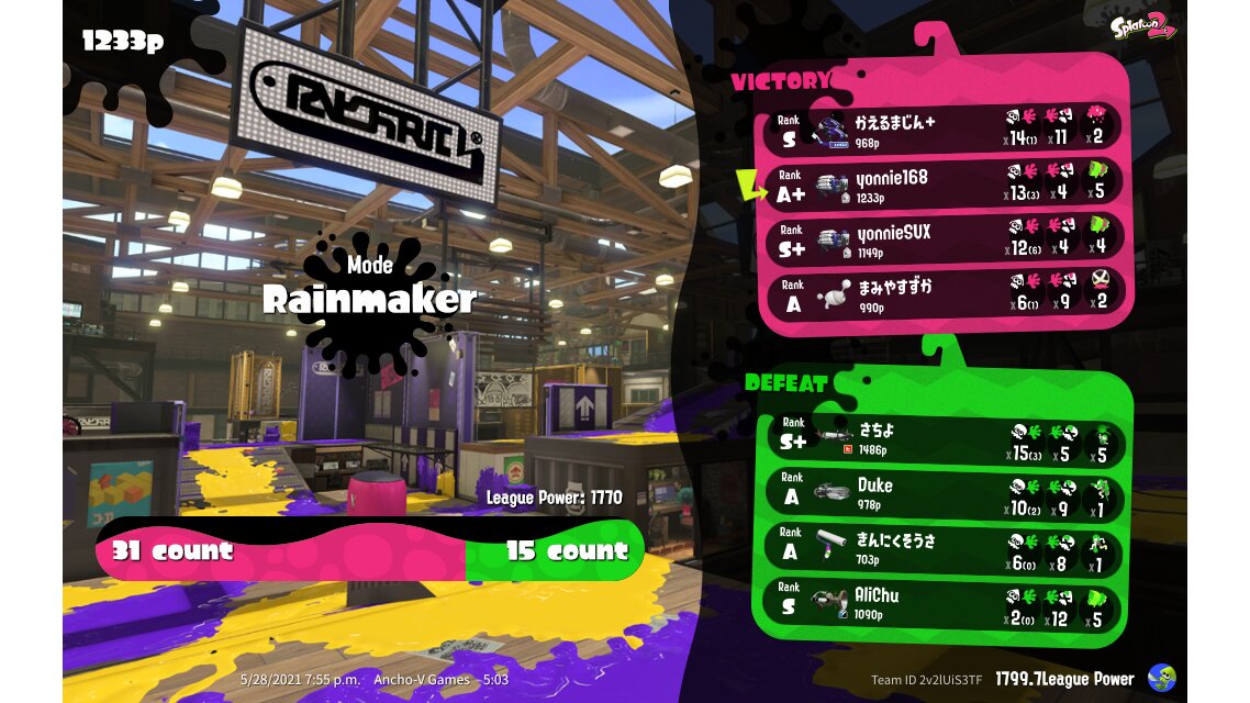 Name Weapon Level Rank Inked k+a/sp k/d Ratio/