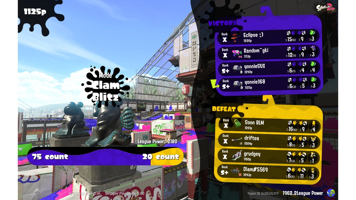 | Mode | Clam Blitz - League Battle (Twin) | |||||||||||||||||||||||||||||||||||||