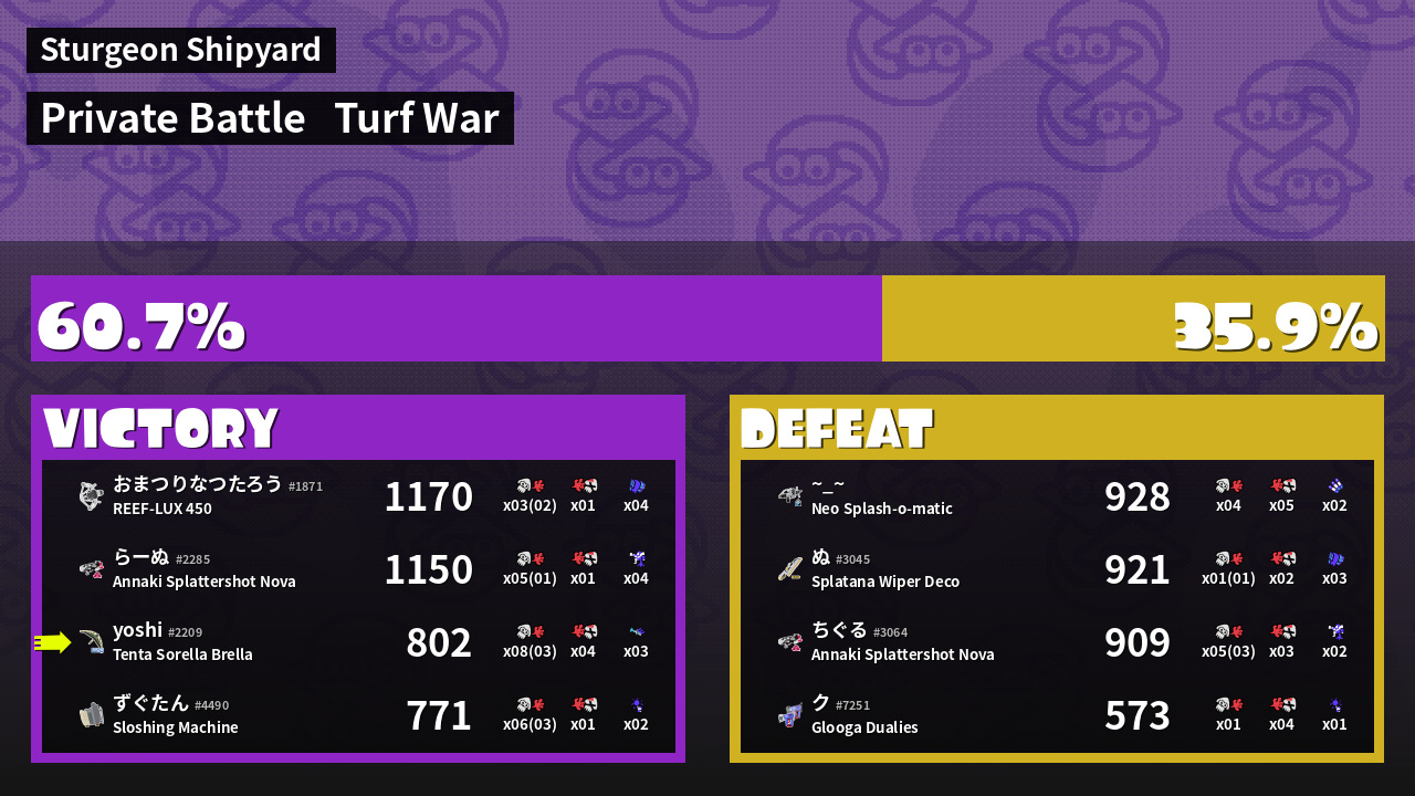 | Medals | #1 Overall Splatter #1 Popular Target #1 Enemy-Base Inker | ||