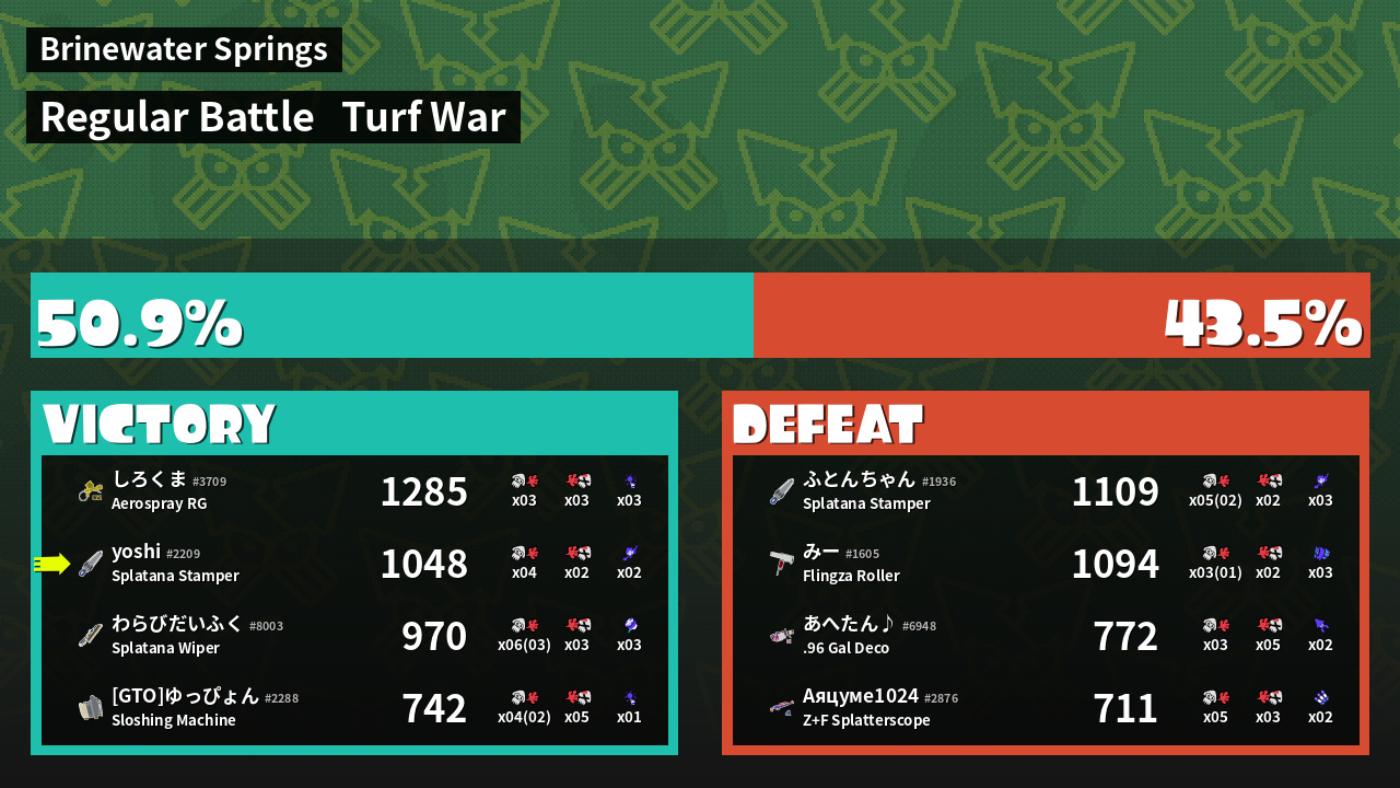 | Mode | Turf War - Regular Battle | ||
