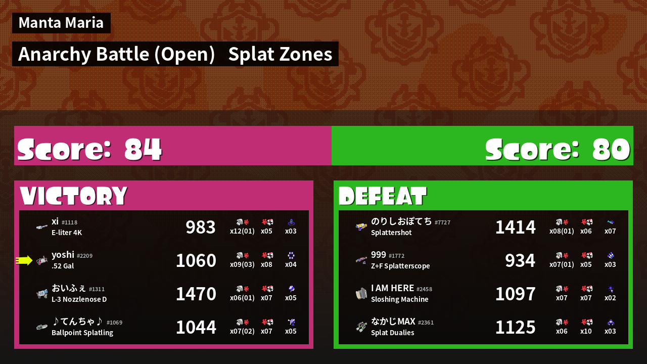 | Mode | Splat Zones - Anarchy Battle (Open) | ||