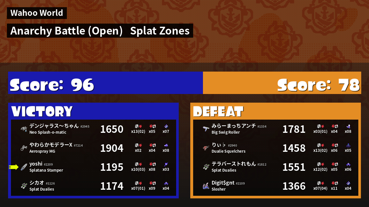 | Mode | Splat Zones - Anarchy Battle (Open) | ||