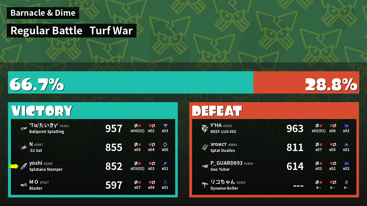 | Medals | #1 Home-Base Inker #1 Splat Assister #1 Ink Consumer | ||
