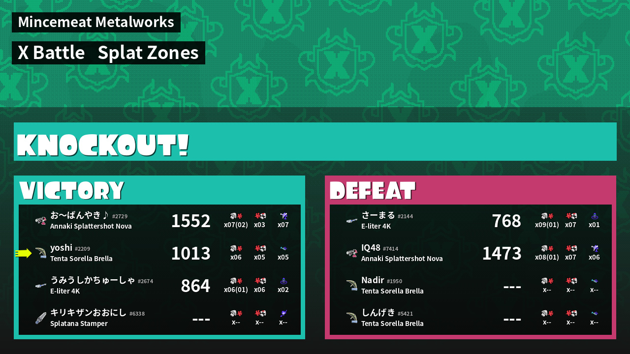 | Medals | #1 Splat Zone Guard #1 Enemy Splatter #1 Damage Taker | ||