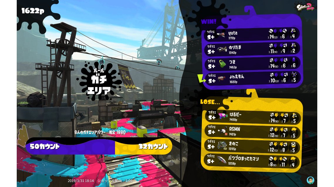 | Mode | Splat Zones - Ranked Battle | ||||||||||||||||||||||||||||||||||||||||||||||
