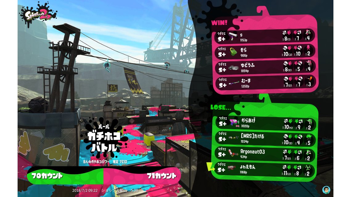| Name | Weapon | Level | Rank | Inked | k+a/sp | k/d |