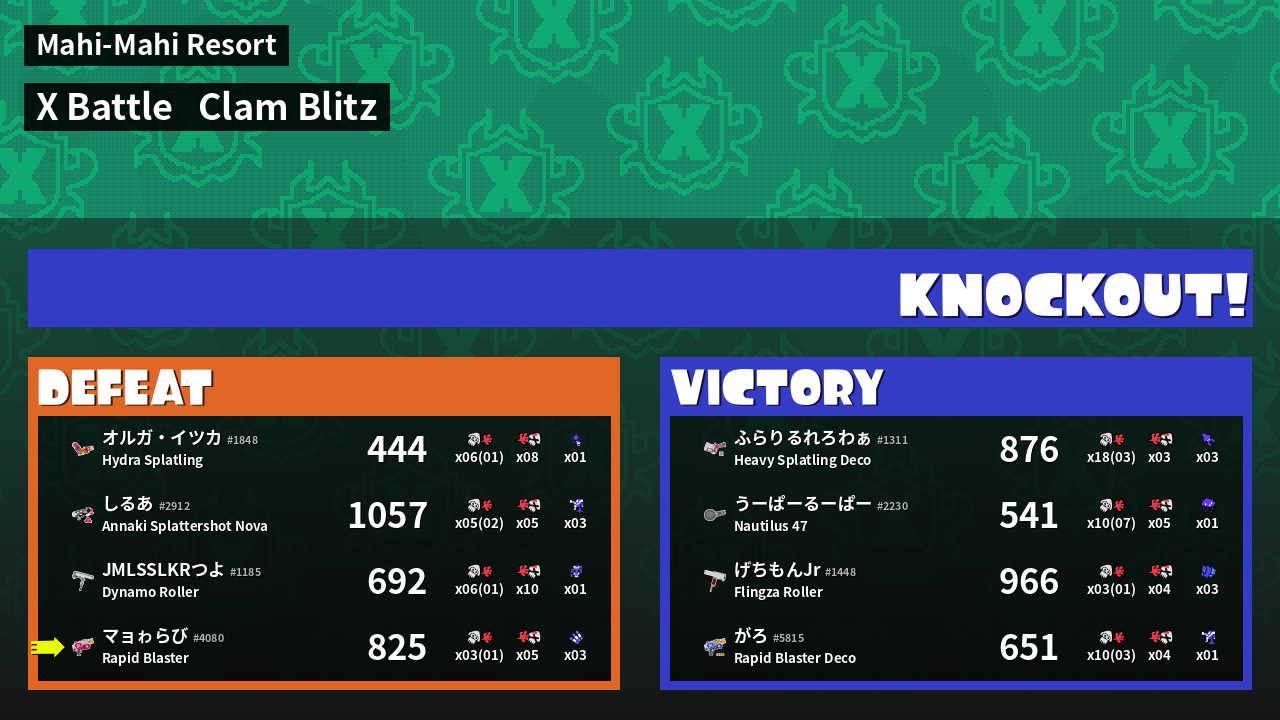 | Medals | #1 Clam Carrier #1 Damage Taker #1 Ink Consumer | ||