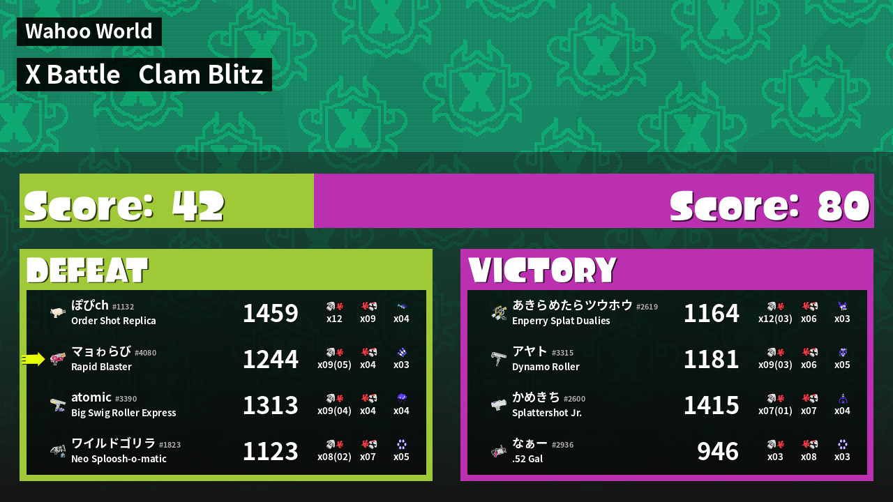 | Mode | Clam Blitz - X Battle | ||