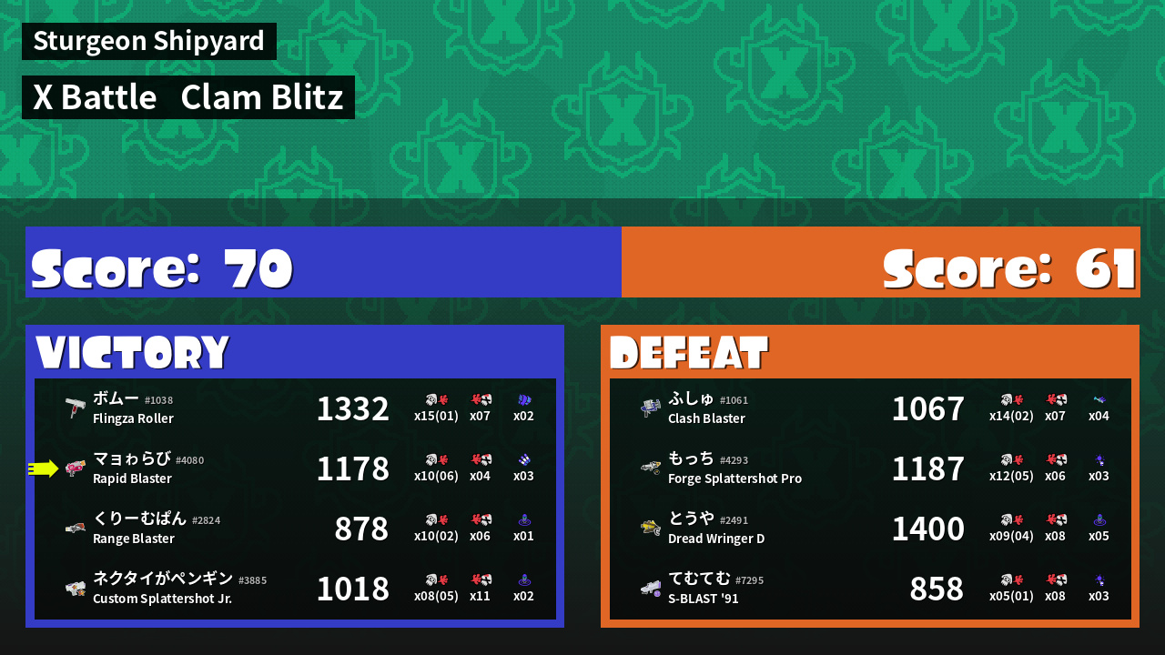 | Mode | Clam Blitz - X Battle | ||
