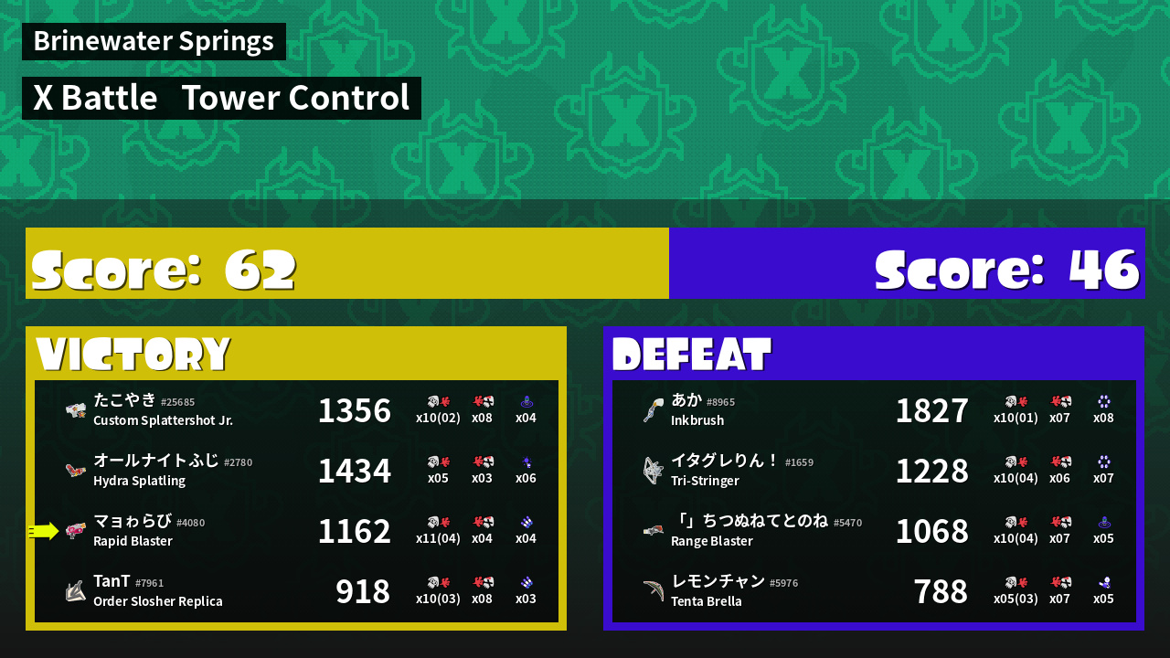 | Medals | #1 Overall Splatter #1 Splat Assister First Splat! | ||