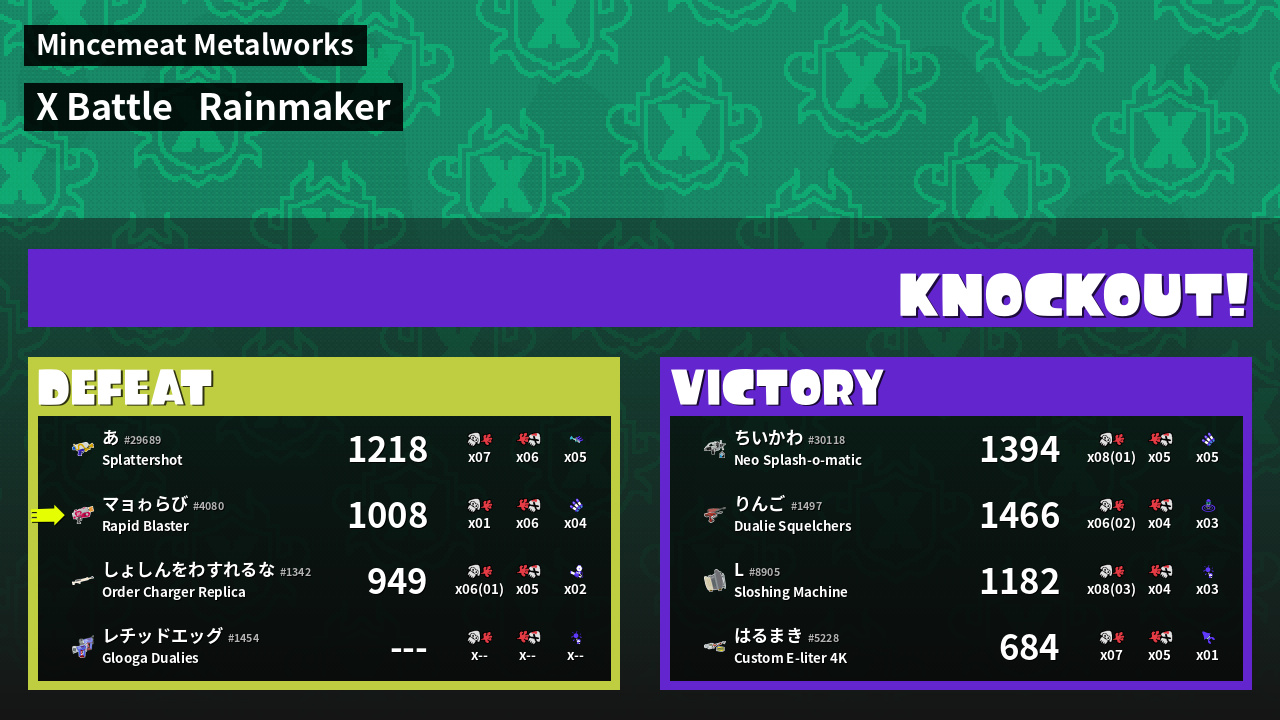 | Weapon | Rapid Blaster ( Ink Mine / Triple Inkstrike) | ||