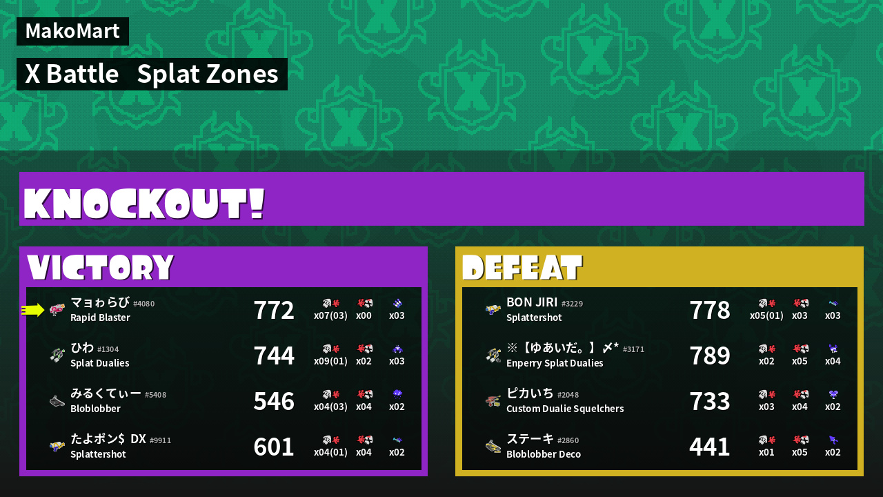 | Mode | Splat Zones - X Battle | ||