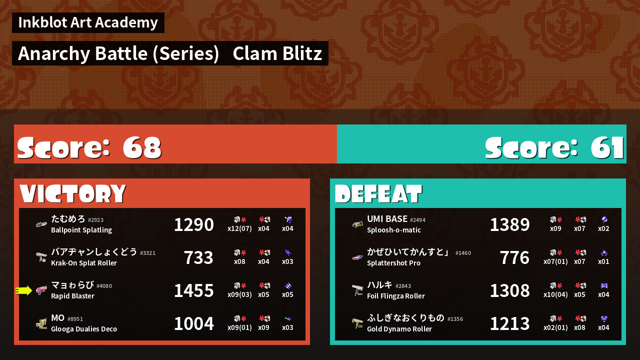 | Mode | Clam Blitz - Anarchy Battle (Series) | ||