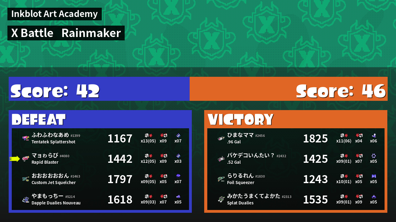 | Mode | Rainmaker - X Battle | ||