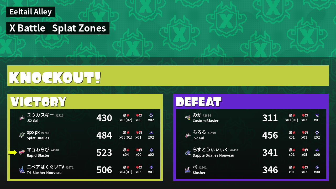 | Medals | #1 Turf Inker #1 Super Jump Spot #1 Enemy Splatter | ||