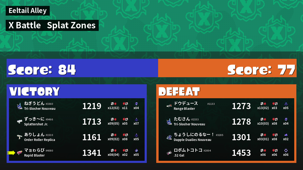 | Mode | Splat Zones - X Battle | ||