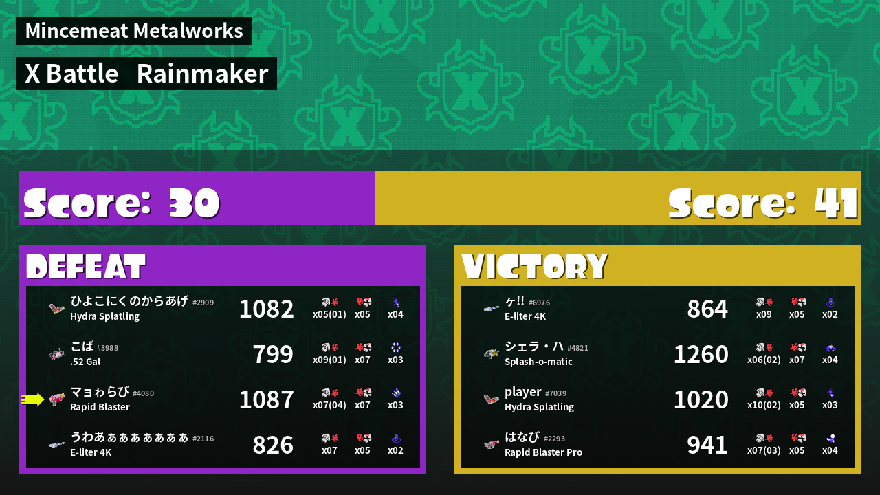 | Medals | #1 Turf Inker #1 Splat Assister #1 Ground Traveler | ||