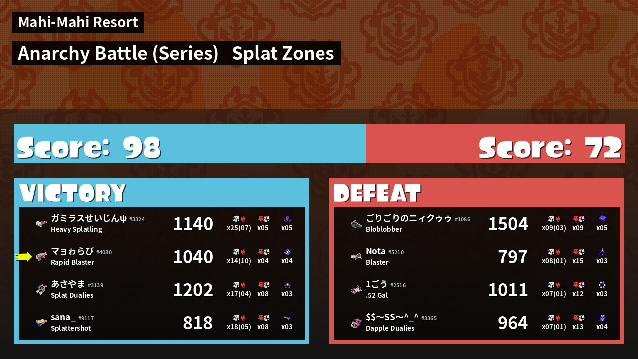| Mode | Splat Zones - Anarchy Battle (Series) | ||
