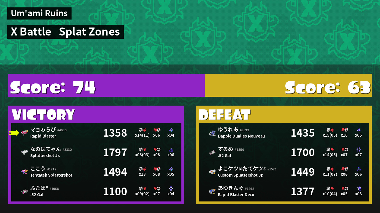 | Mode | Splat Zones - X Battle | ||