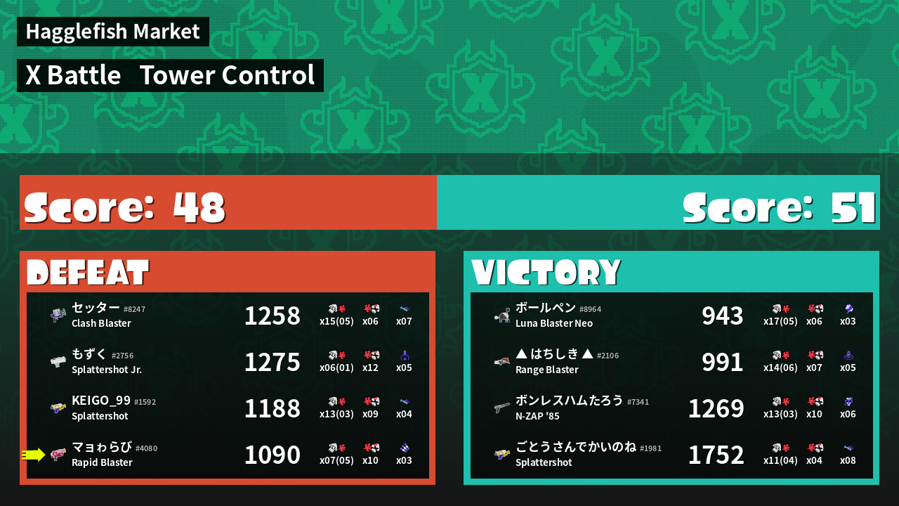 | Mode | Tower Control - X Battle | ||