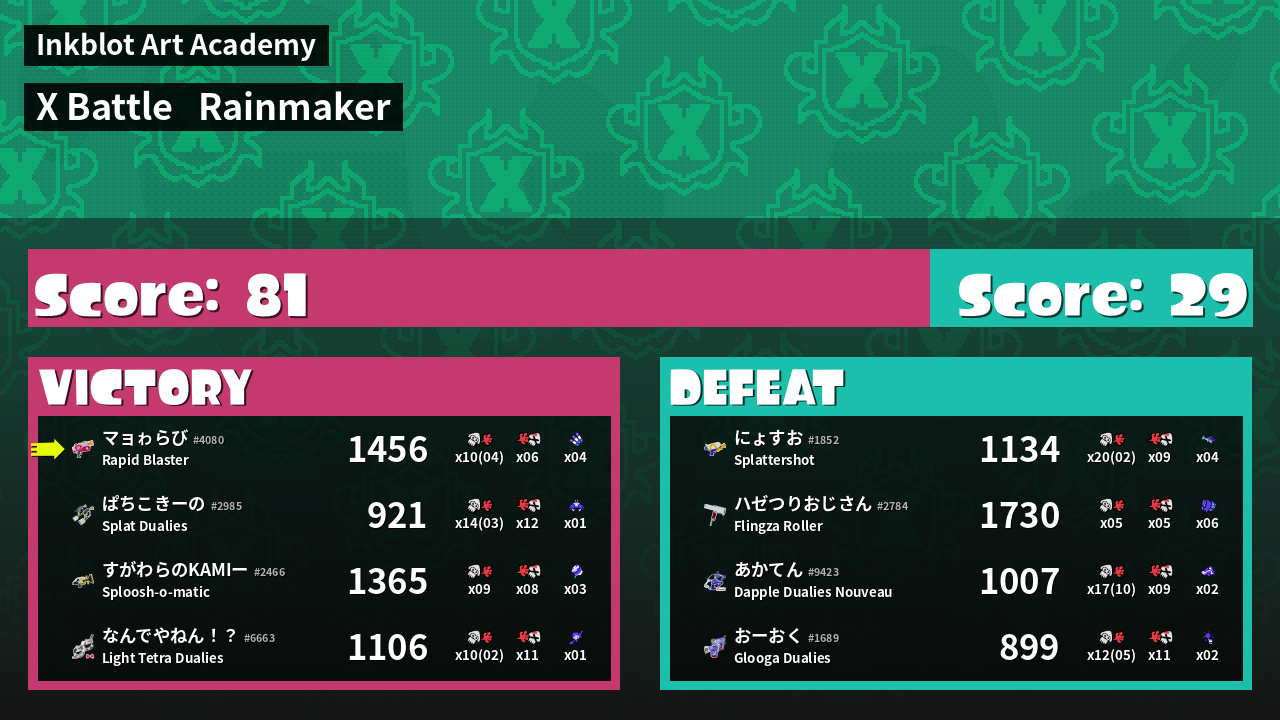 | Weapon | Rapid Blaster ( Ink Mine / Triple Inkstrike) | ||
