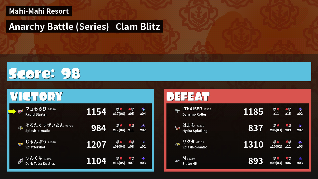 | Mode | Clam Blitz - Anarchy Battle (Series) | ||