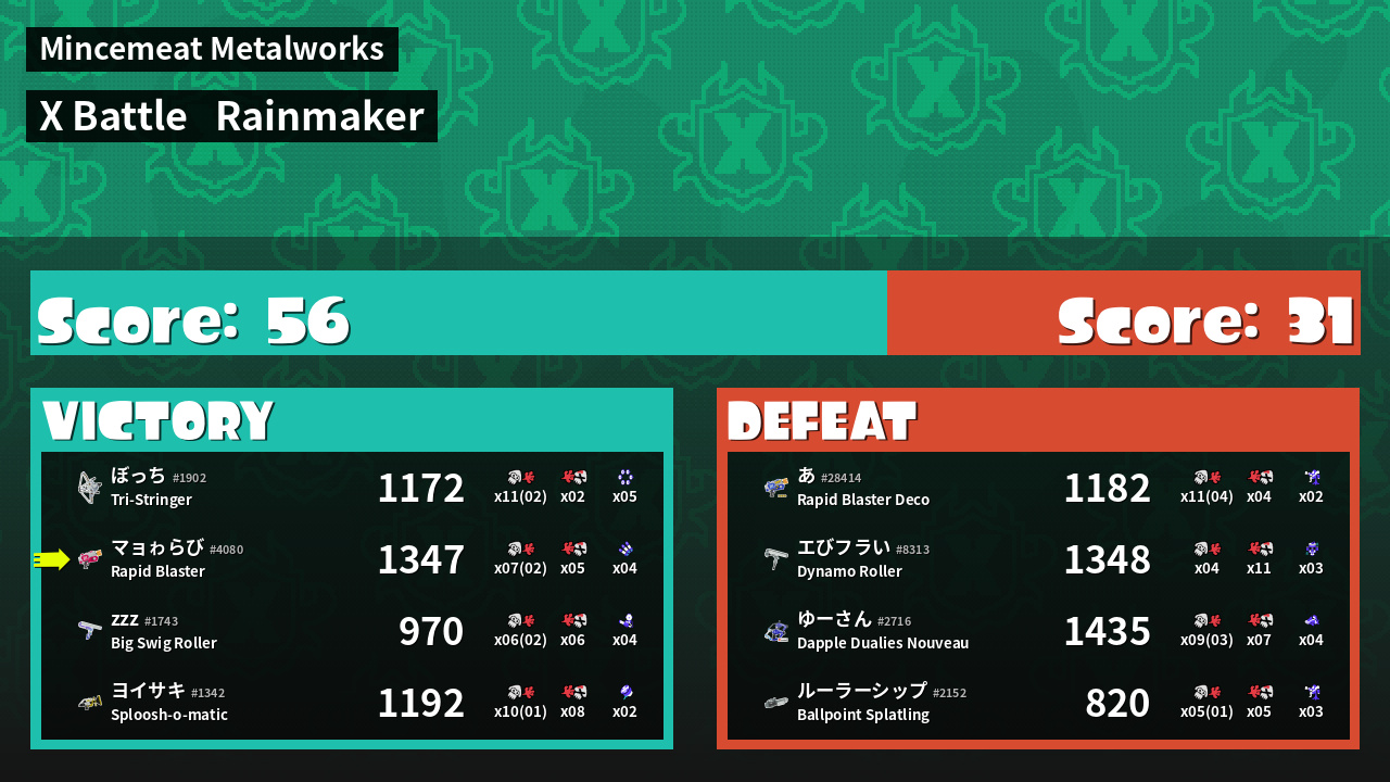 | Medals | #1 Score Booster #1 Turf Inker #1 Splat Assister | ||