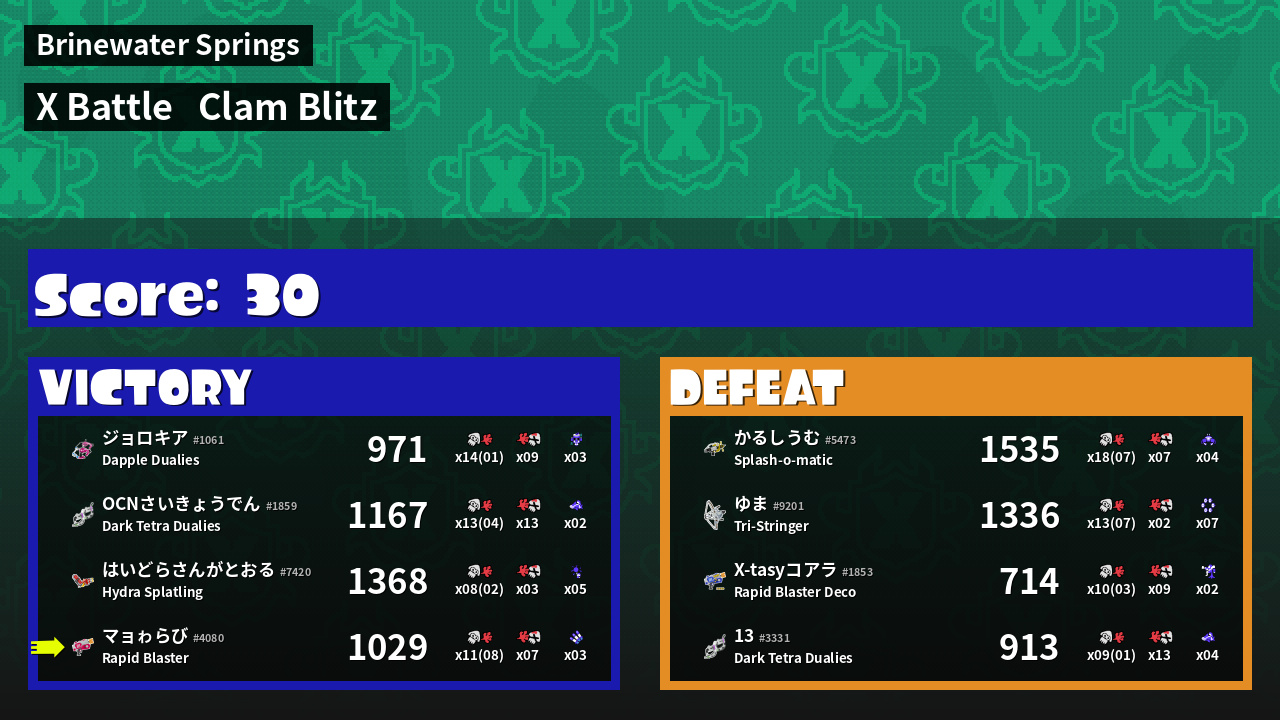 | Medals | #1 Splat Assister First Splat! #2 Clam Carrier | ||