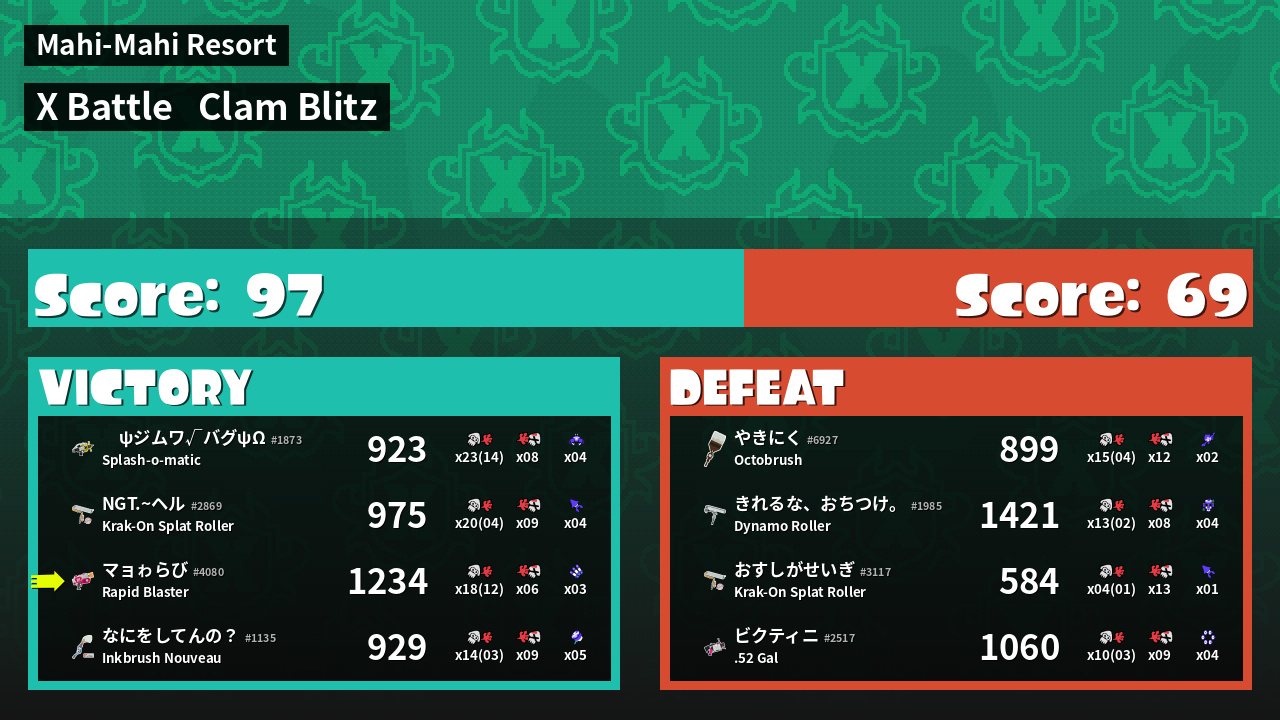 | Mode | Clam Blitz - X Battle | ||