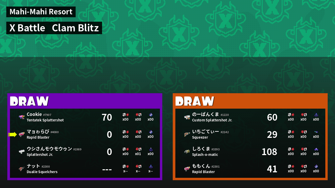 | Mode | Clam Blitz - X Battle | ||
