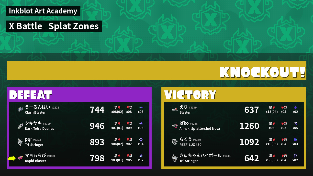 | Medals | #1 Damage Taker #1 Ink Consumer #1 Triple Inkstrike User | ||