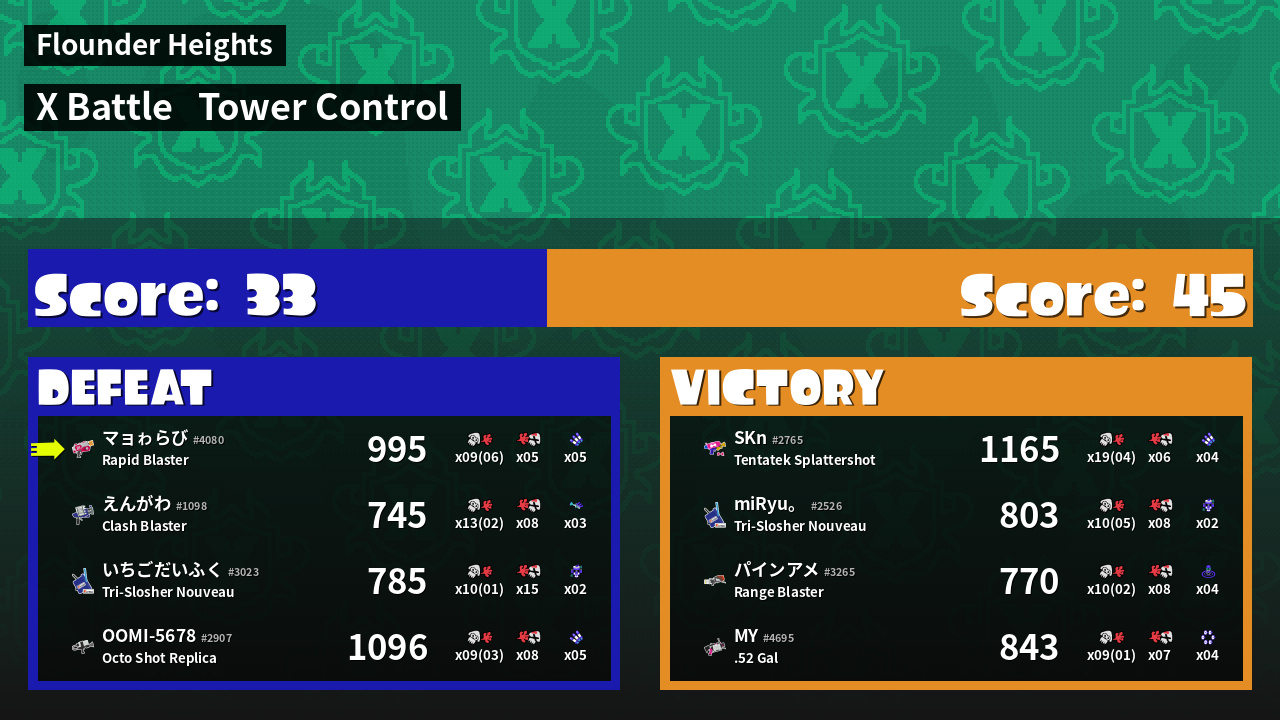 | Mode | Tower Control - X Battle | ||