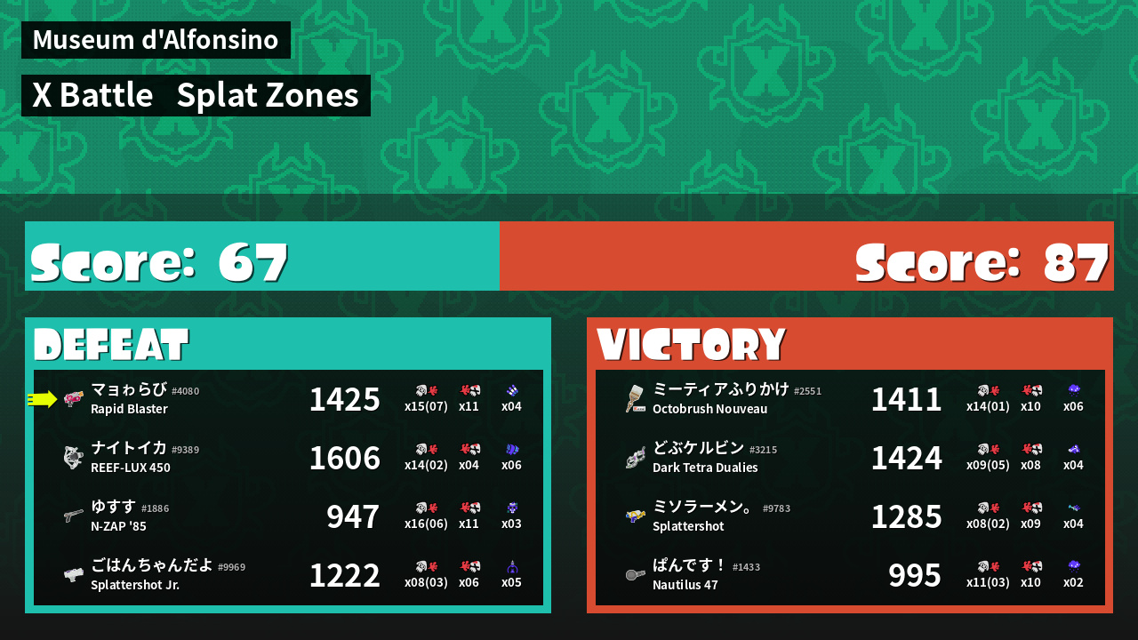 | Mode | Splat Zones - X Battle | ||