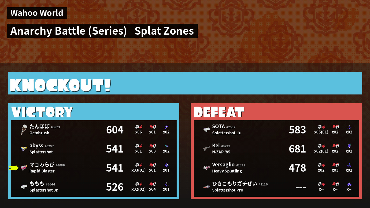 | Mode | Splat Zones - Anarchy Battle (Series) | ||