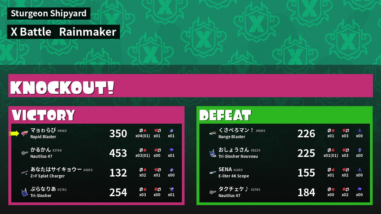 | Mode | Rainmaker - X Battle | ||