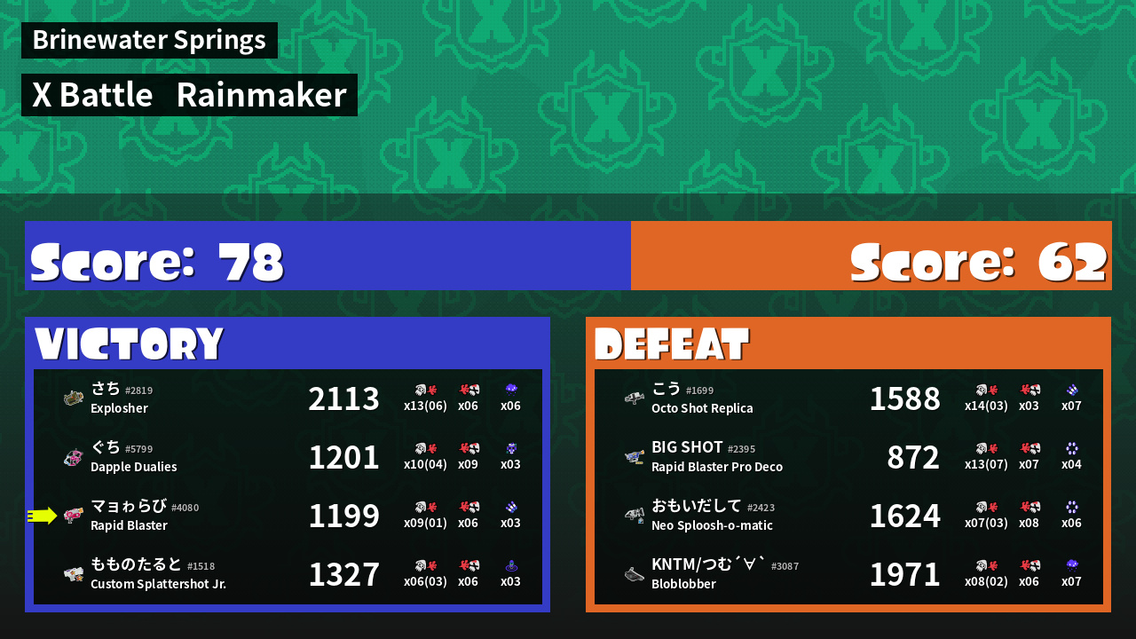 | Weapon | Rapid Blaster ( Ink Mine / Triple Inkstrike) | ||
