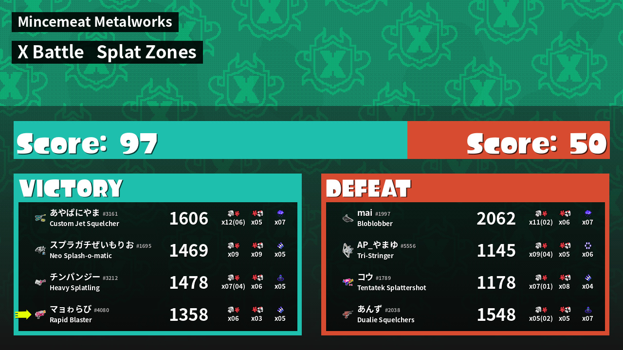 | Mode | Splat Zones - X Battle | ||