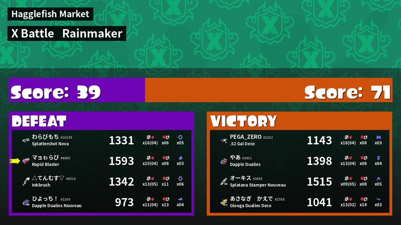 | Mode | Rainmaker - X Battle | ||