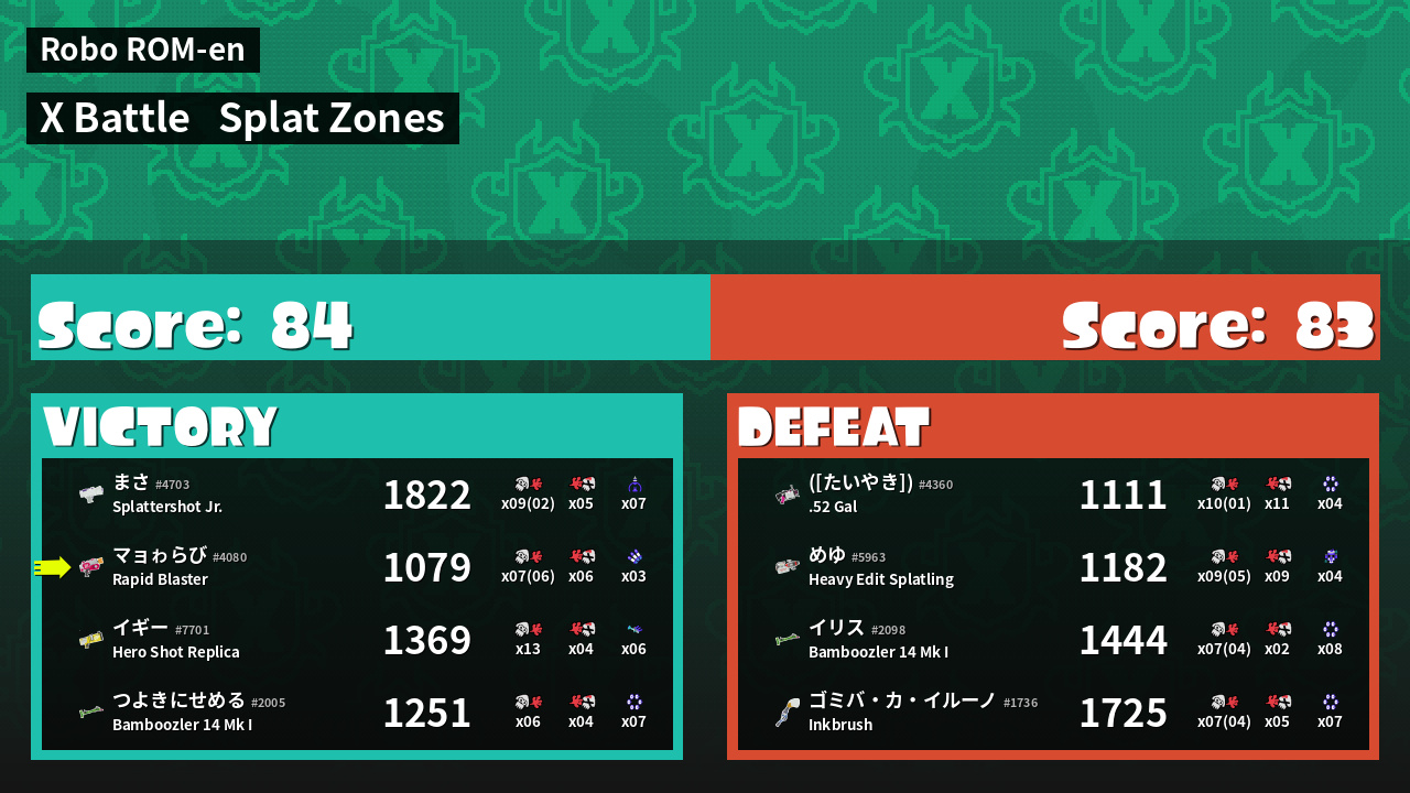 | Medals | #1 Splat Zone Guard #1 Super Jump Spot #1 Splat Assister | ||
