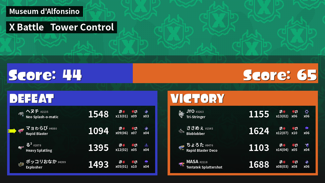 | Mode | Tower Control - X Battle | ||